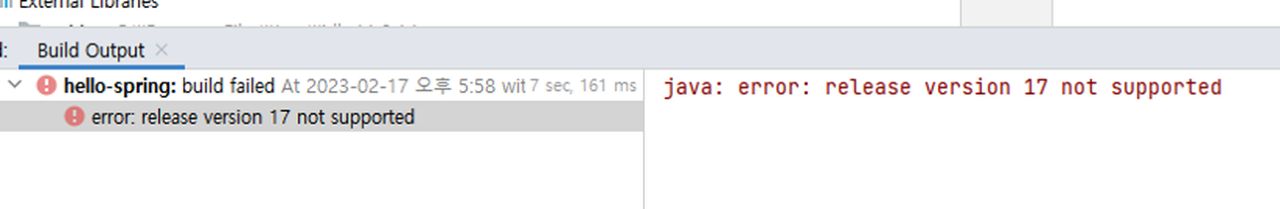 스프링 부트로 처음 프로젝트 생성하고 실행하려는 자바 17버전 오류가 떴다 필자 상황 1. Java11 / IntelliJ 2. Spring Boot Starter(https://start.spring.io/) 로 프로젝트 생성 3. 이후 아무것도 안건들임 원인 스프링 부트 스타터로 프로젝트 생성할때 Java 버전을 17로 잘못 설정함 해결 방법 (1) JDK 17 설치 https://www.oracle.com/java/technologies/downloads/ Download the Latest Java LTS Free Subscribe to Java SE and get the most comprehensive Java support available, with 24/7 global access to ..